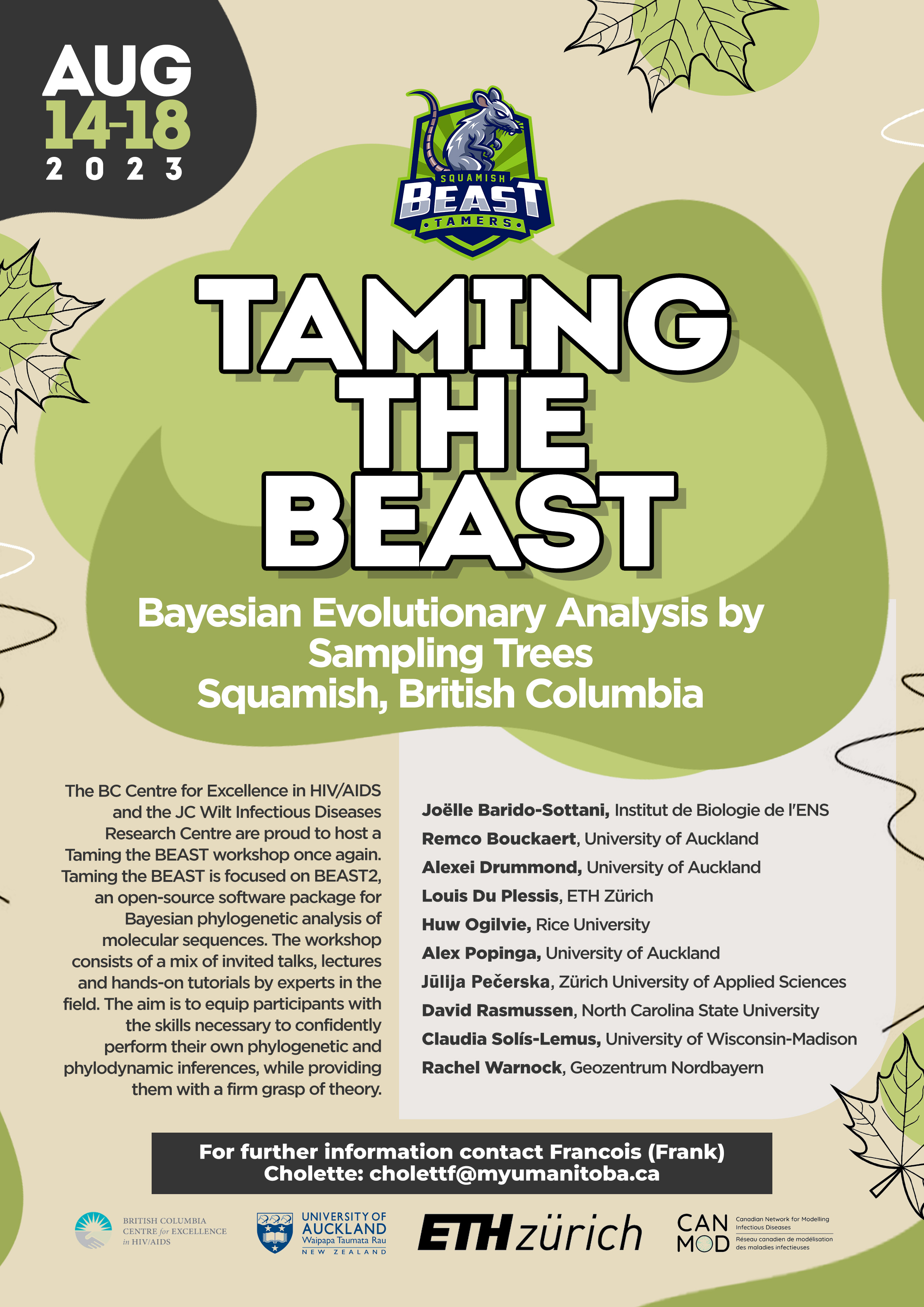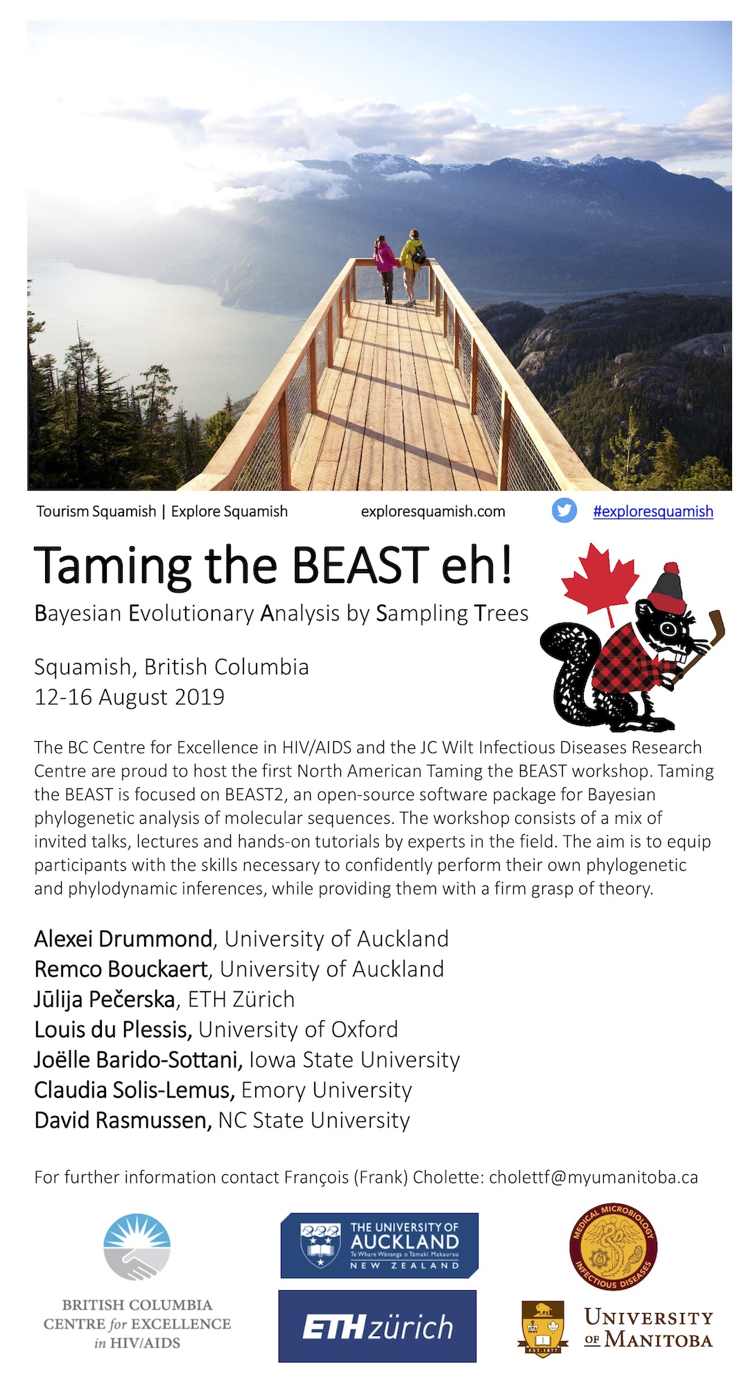 The official webpage for the upcoming Taming the BEAST workshop in Squamish this