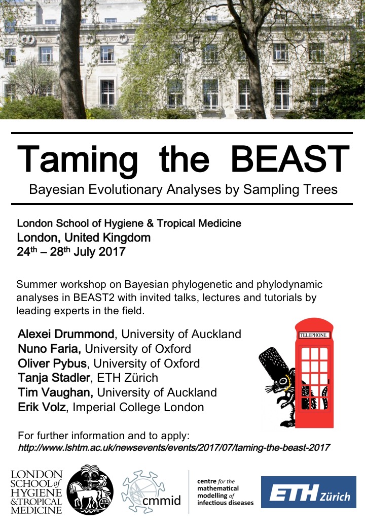 We are happy to announce that the next installment of Taming the BEAST will be in London, where it will be hosted by the London School of Hygiene & Tropical Medicine! Thanks to Stephane Hue for organising!