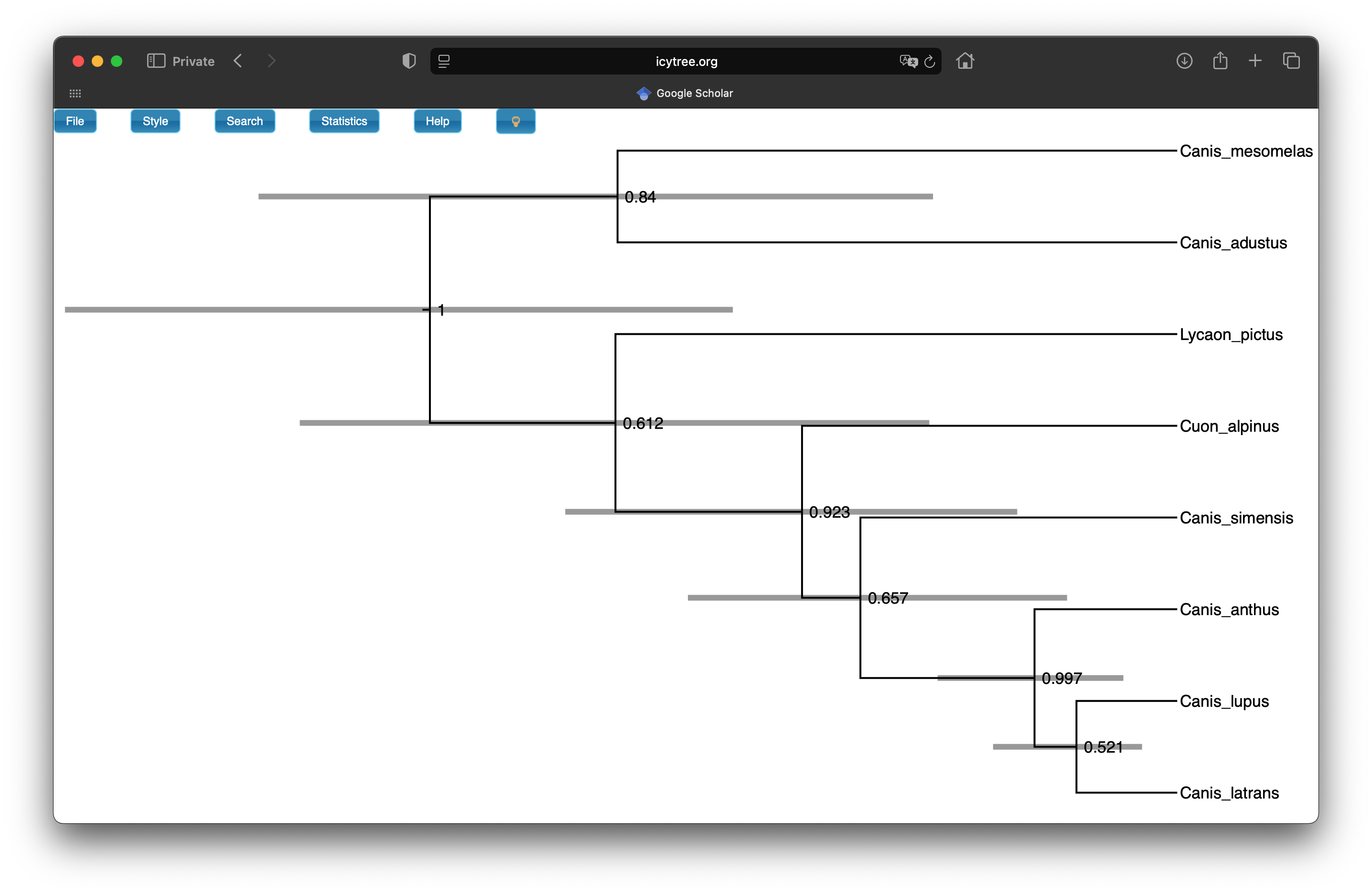 IcyTree (https://icytree.org) is a browser-based phylogenetic tree viewer. It is intended for rapid visualisation of phylogenetic tree files.